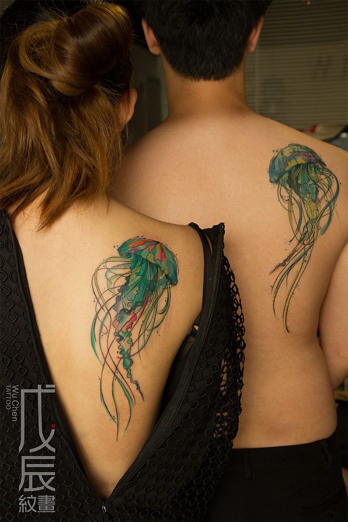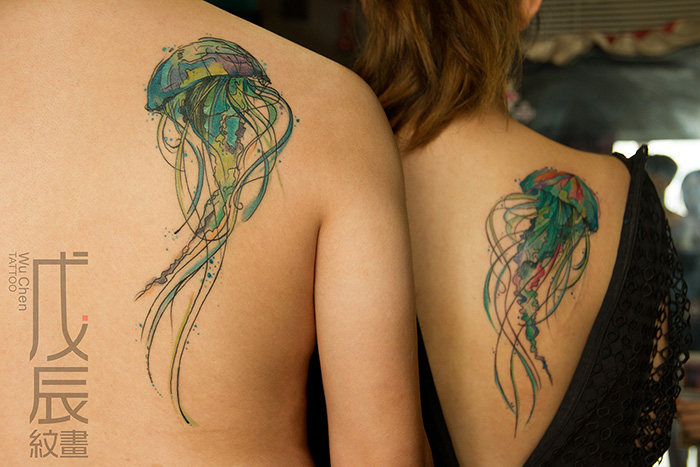 情侣水母,大海深处的自由自在。欢迎定制水彩风格